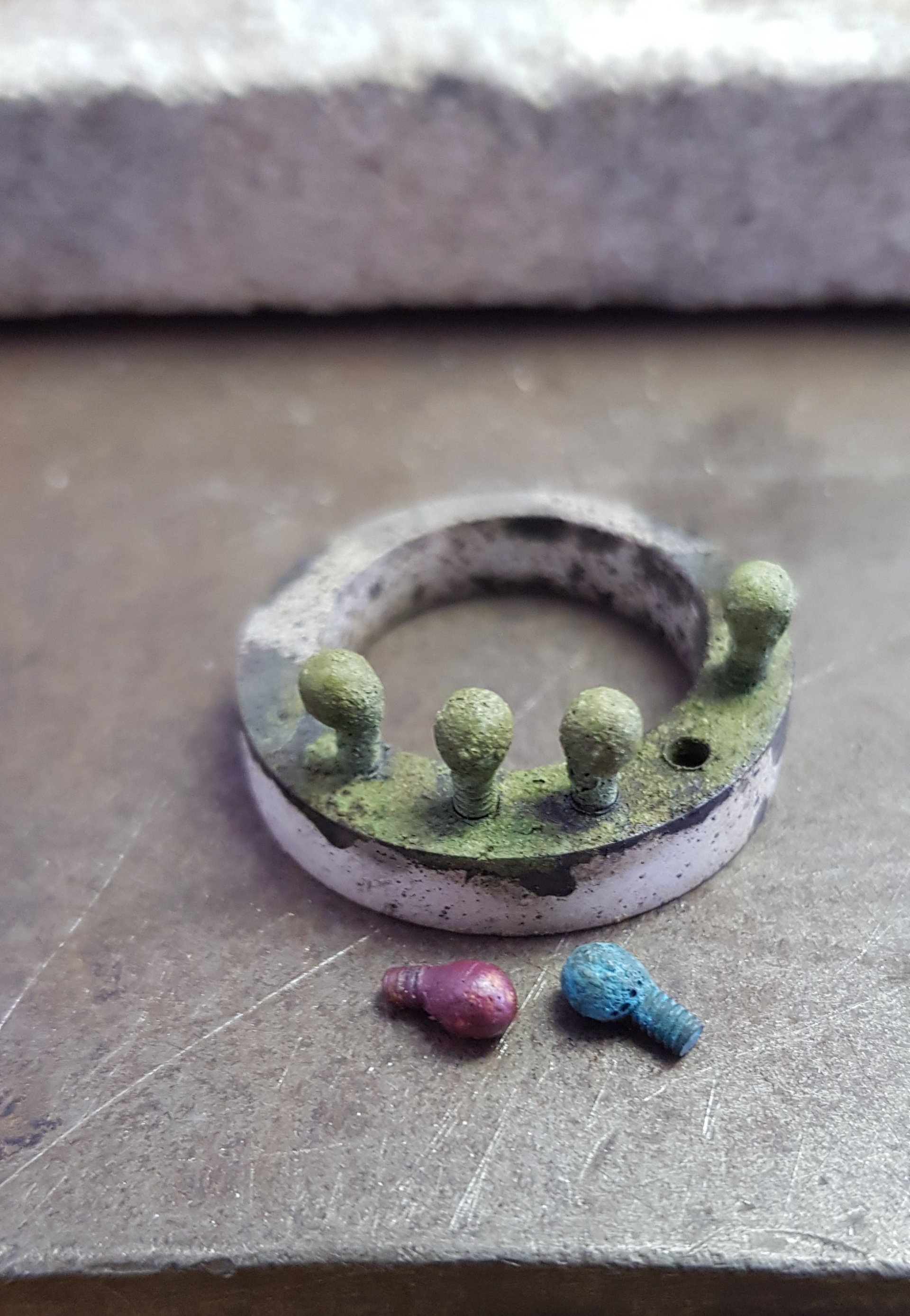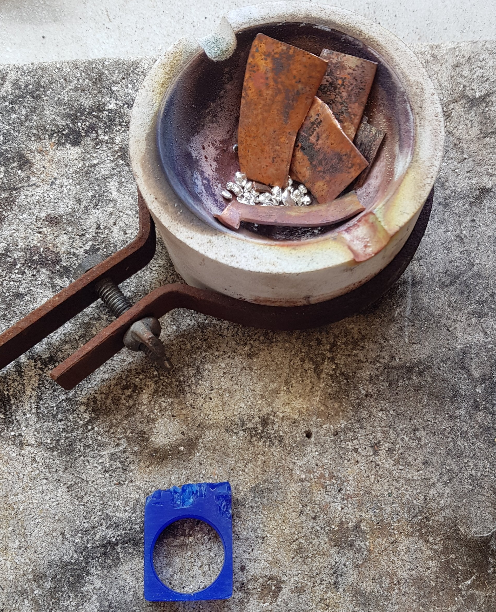 Several Shibuichi alloys, Fine Silver, Sterling Silver, 14ct Gold, Japanese patina
