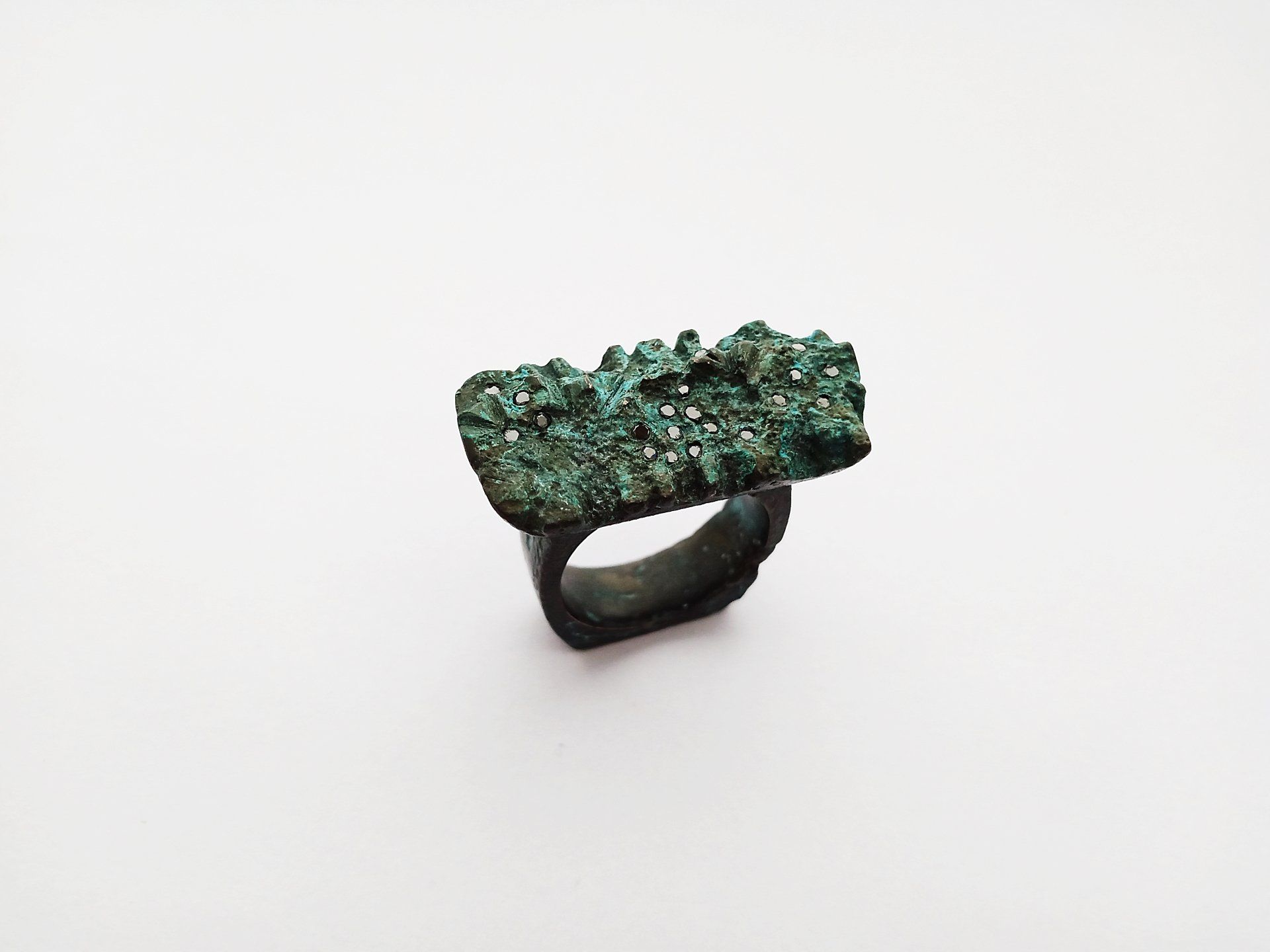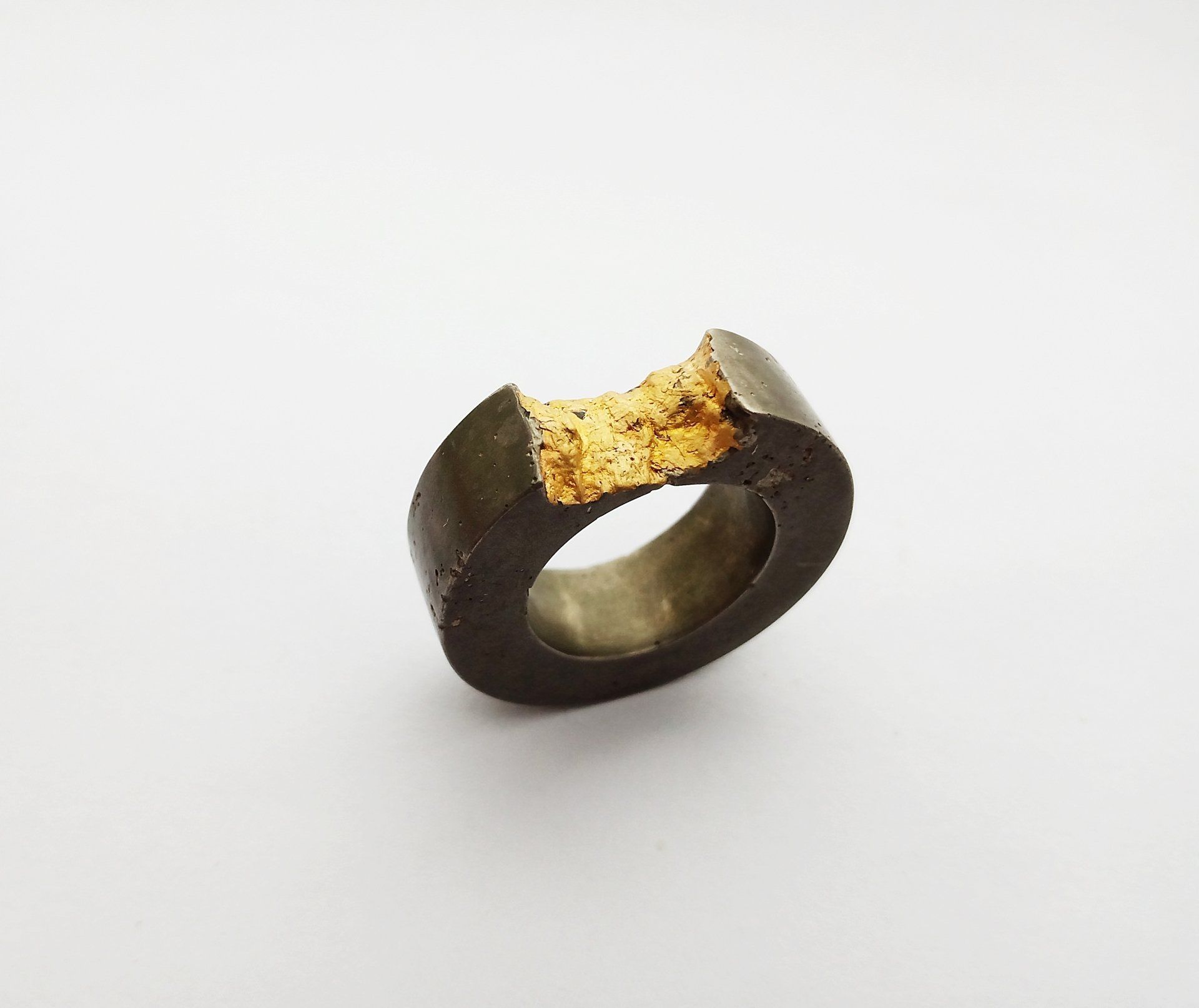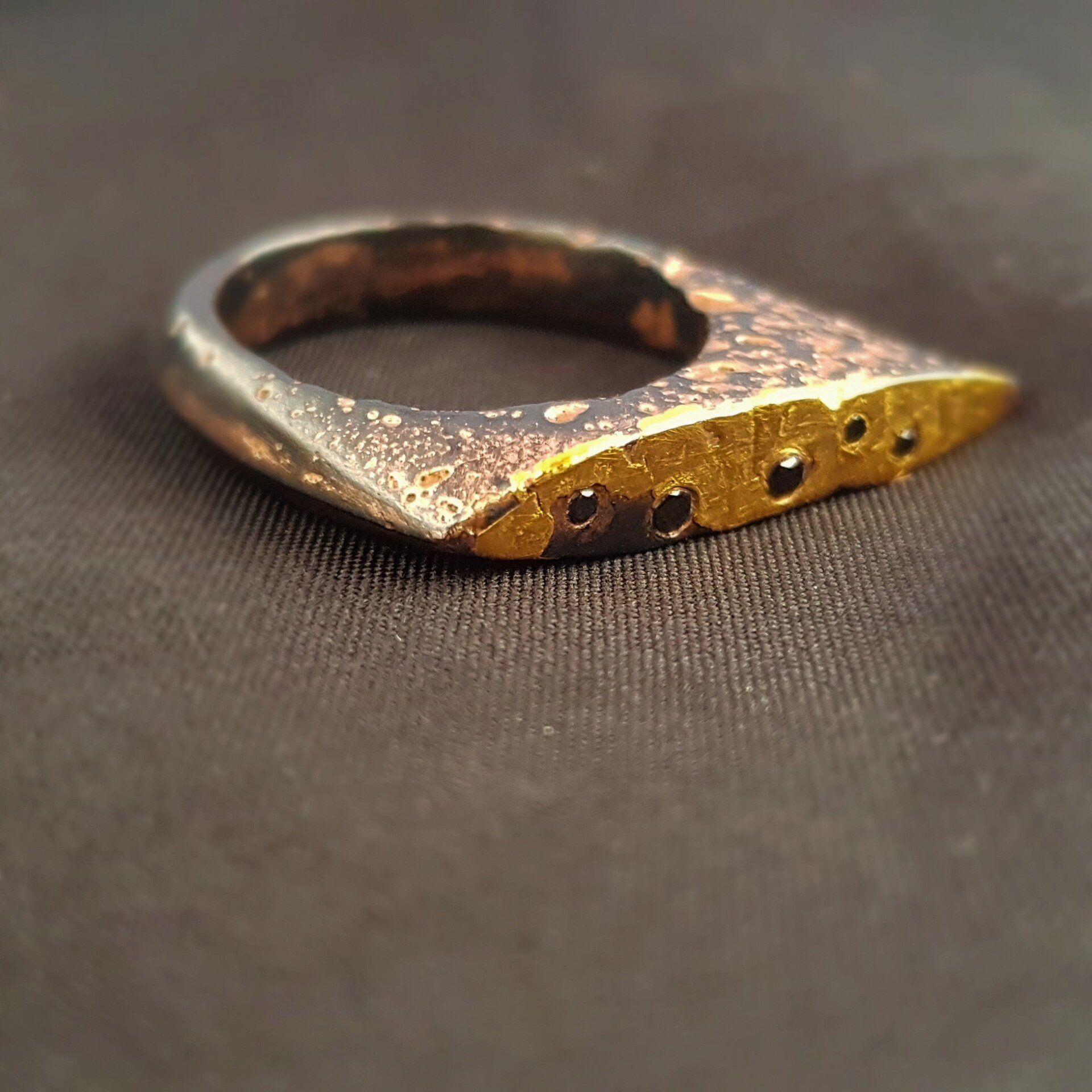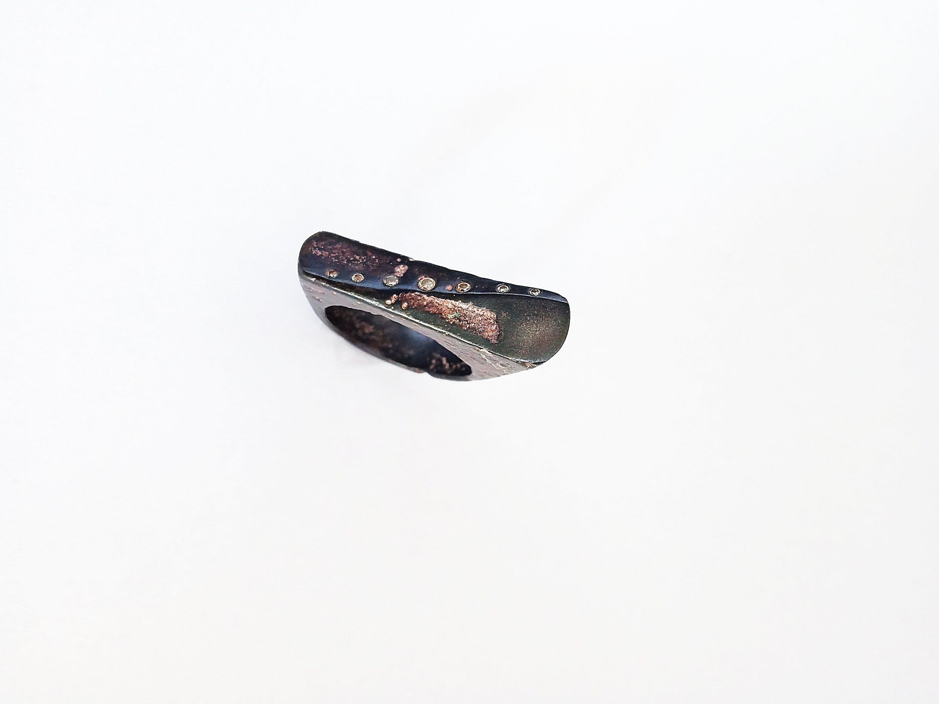 Shakudo, 25ct Gold,black Diamonds, Japanese patina
