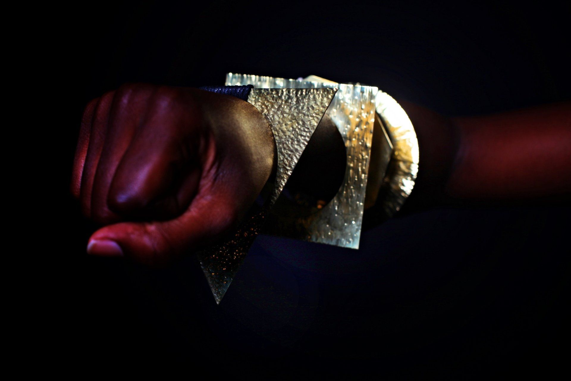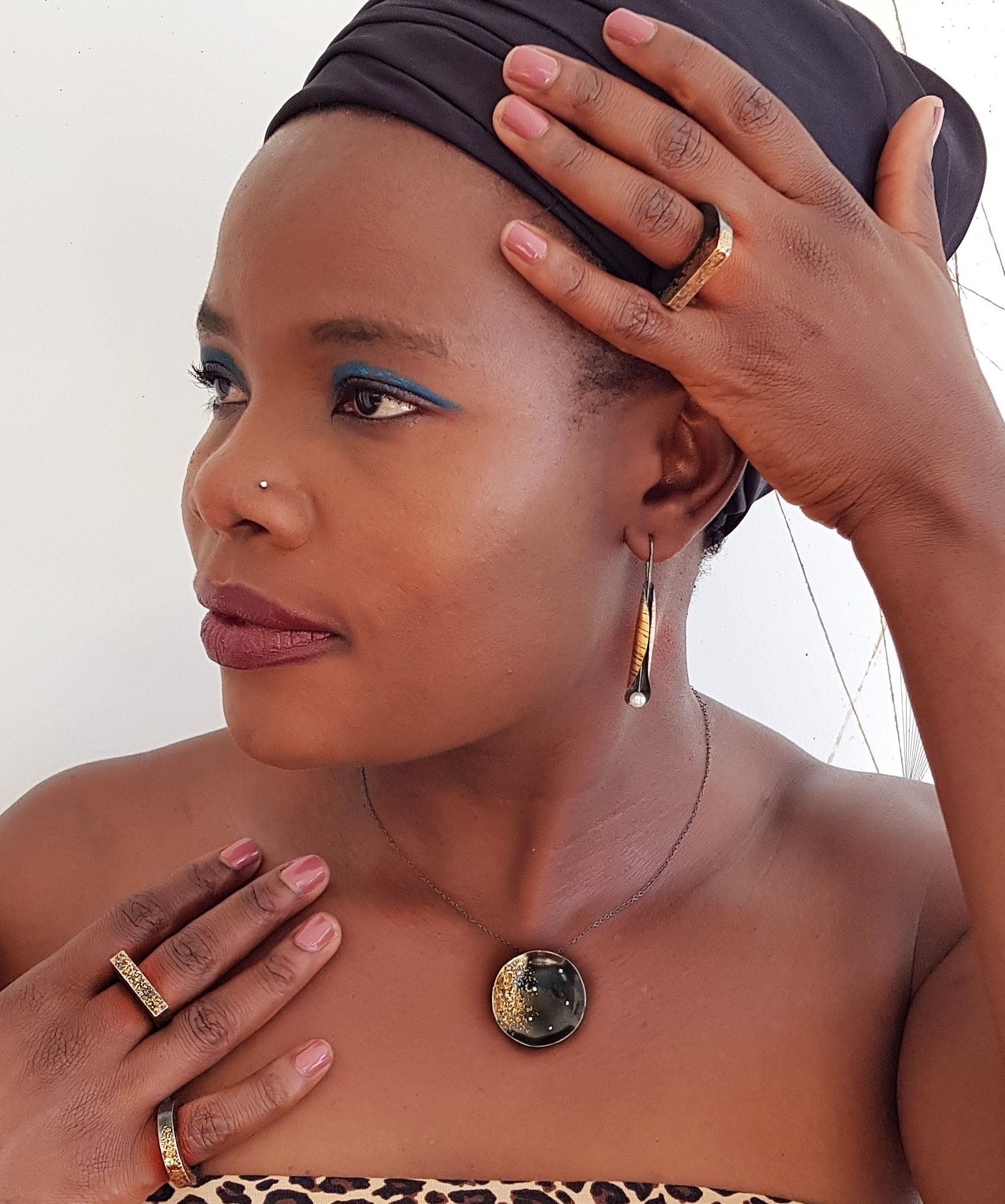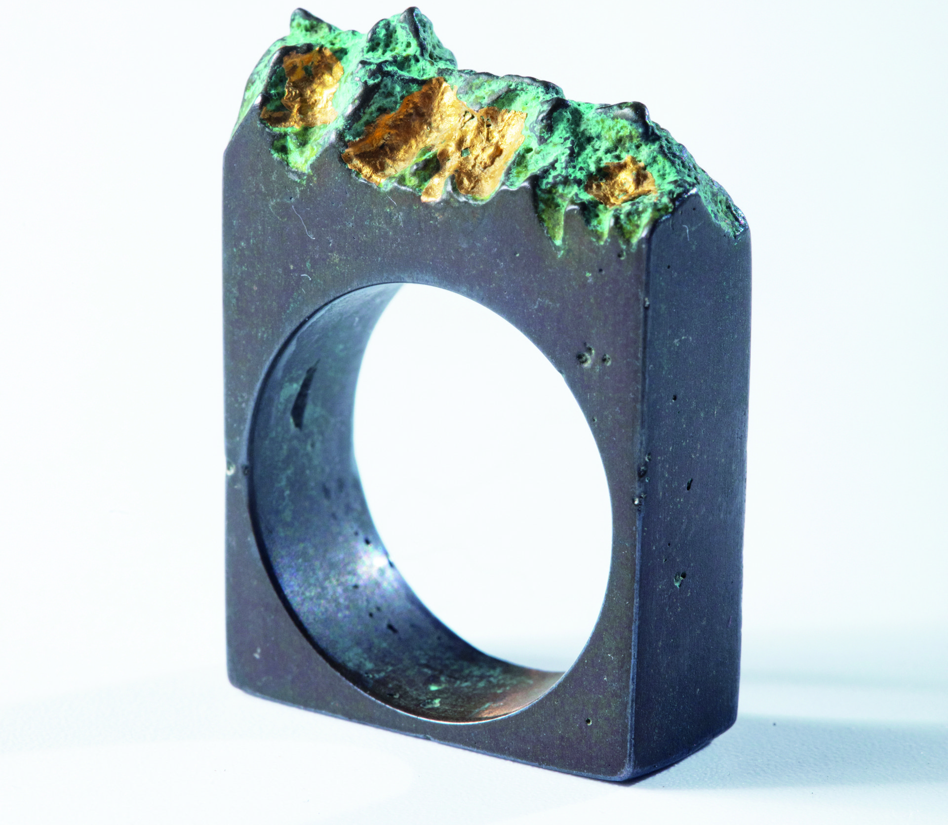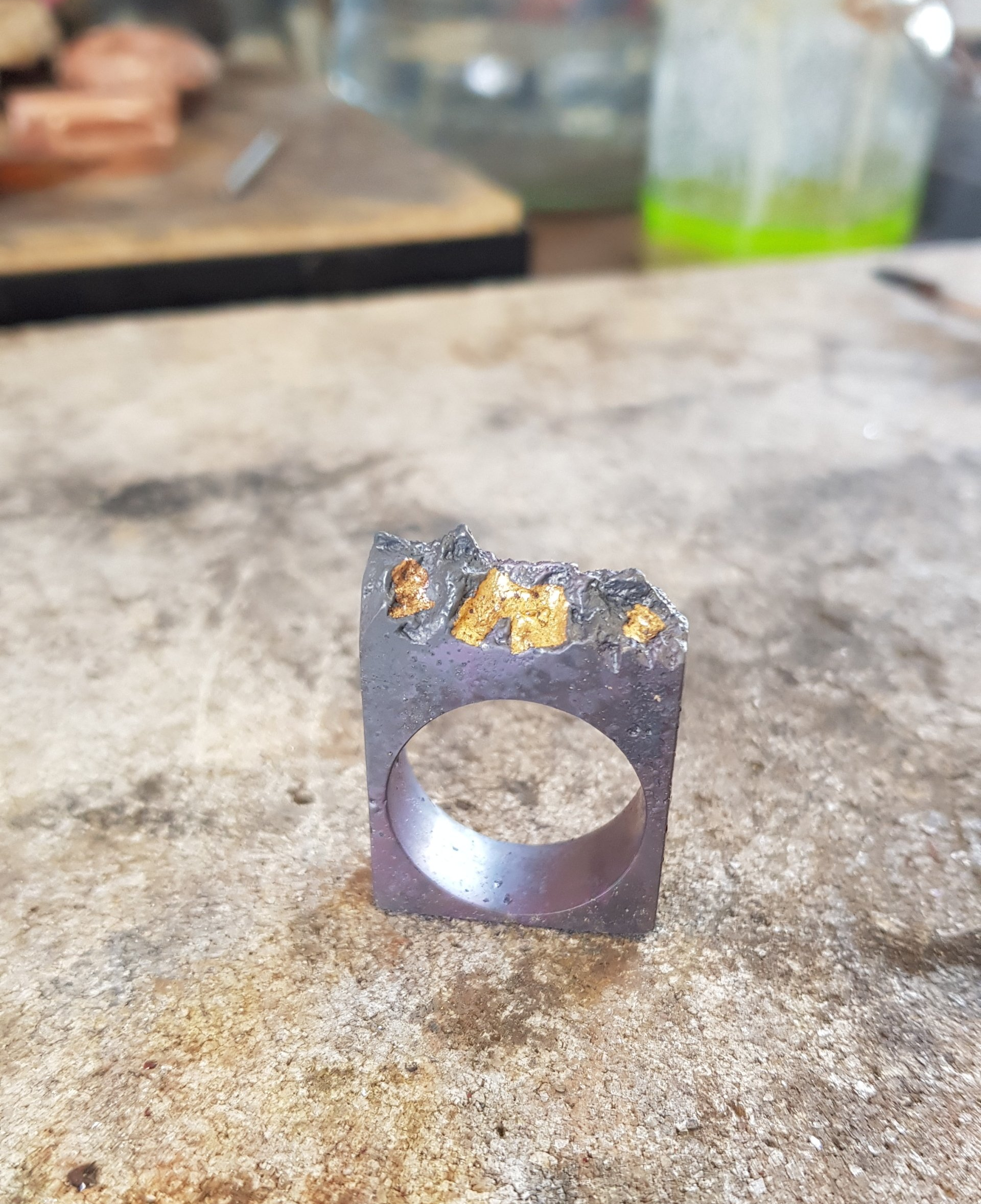 Shakudo, 25ct Gold,black Diamonds, Japanese patina